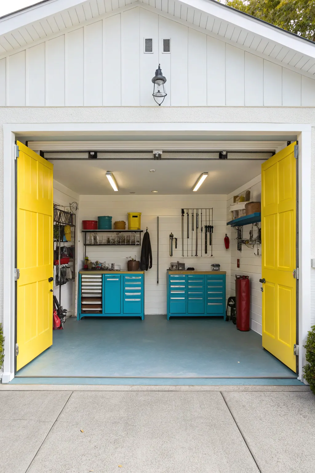 Multi-Colored Storage Containers: Arrange play and work areas by using vibrant storage containers, adding a splash of color to your garage. Organize your stuff in style!