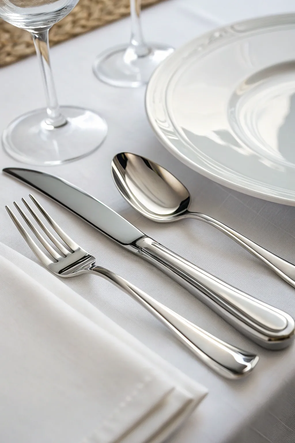 - Understated Steel Flatware Set: Enhance your ivory-themed meal using sleek, minimalist stainless steel flatware for a perfect contrast.