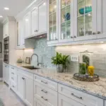 There’s an undeniable sense of luxury evoked by a granite backsplash. When paired with white cabinetry, it crafts a cohesive aesthetic that quietly exudes sophistication.