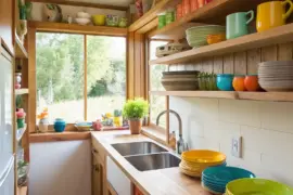- Wall-Affixed Timber Racks: Enhance your kitchen using stylish timber racks, perfect for showcasing elegant dishware and decor.