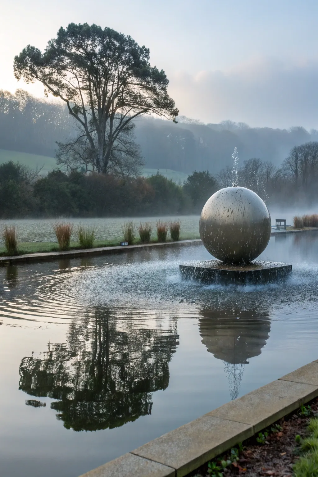 The floating sphere fountain is a visual wonder where the orb appears to linger on water. It’s a seamless fusion of enigma and refinement.