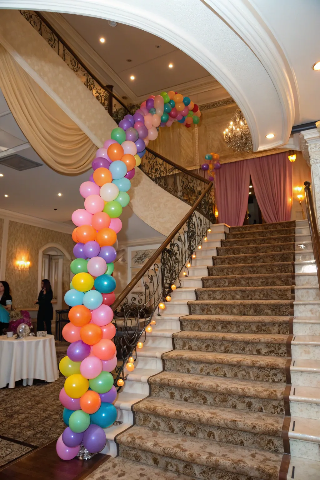Beautify stairways using balloon bands to guide those attending through the venue. I’ve attempted this within my residence, and it consistently crafts a charming route towards the festivities.