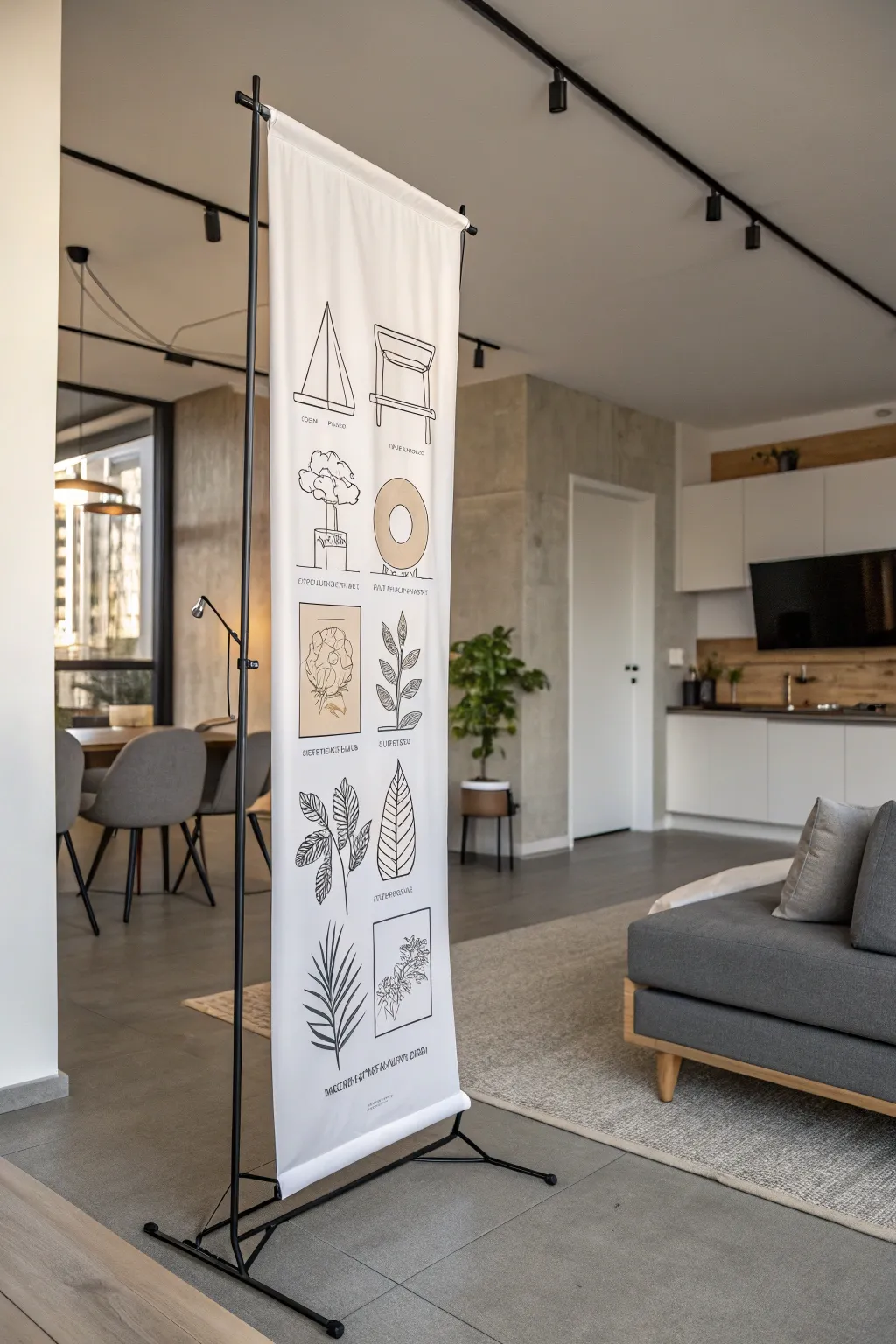 One of my favorite approaches for a vertical banner is a captivating geometric design. Its crisp lines and striking forms can instantly rejuvenate any room, lending it a contemporary and fashionable vibe.