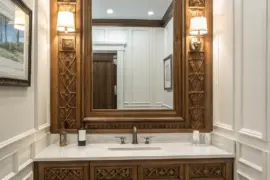 Don’t forget about the space under your sink; put in cabinets or open shelves for stashing towels. This has helped me keep bathrooms looking neat and stylish.