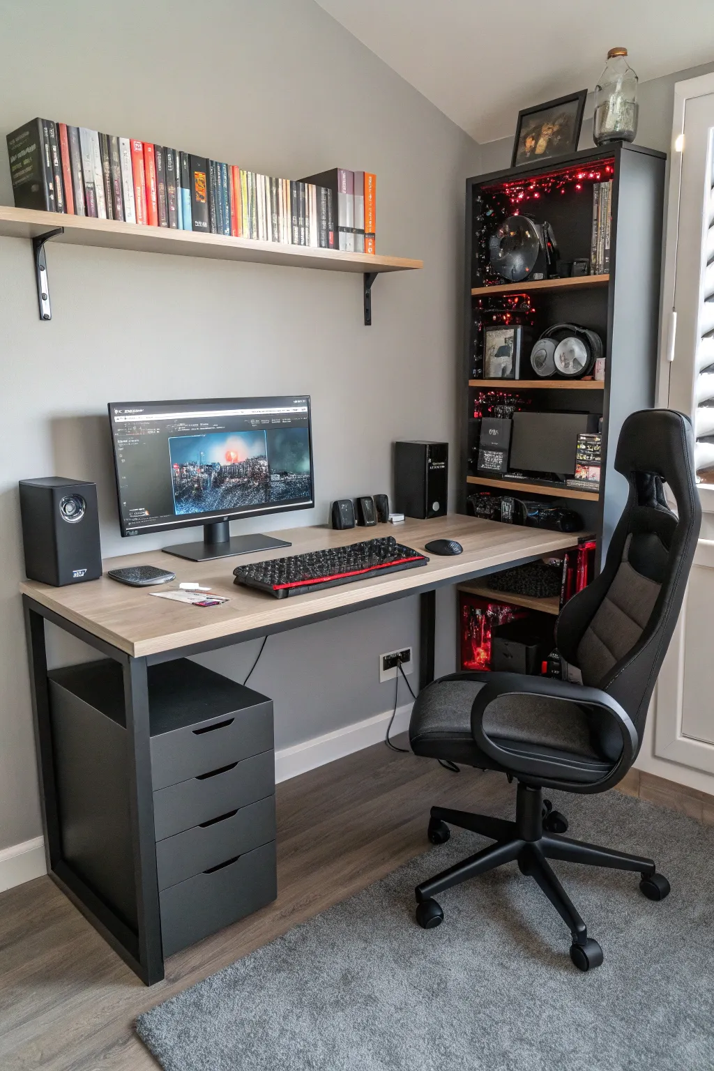 • Wall-Attached Shelves: Capitalize on vertical area with fashionable wall-attached shelves for books and gaming peripherals.