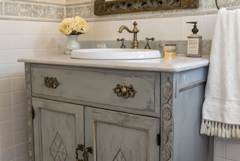In bathroom design, the evolving trend of gray vanities presents a chance to infuse any home with timeless elegance. Let’s uncover innovative approaches to integrate this sophisticated piece into your bathroom, crafting a space that’s both chic and practical. Add Art An artistic bathroom features a gray vanity and curated wall art. Display art pieces over your gray vanity to add personality and style, transforming your bathroom into a gallery-like space. These products might help:…