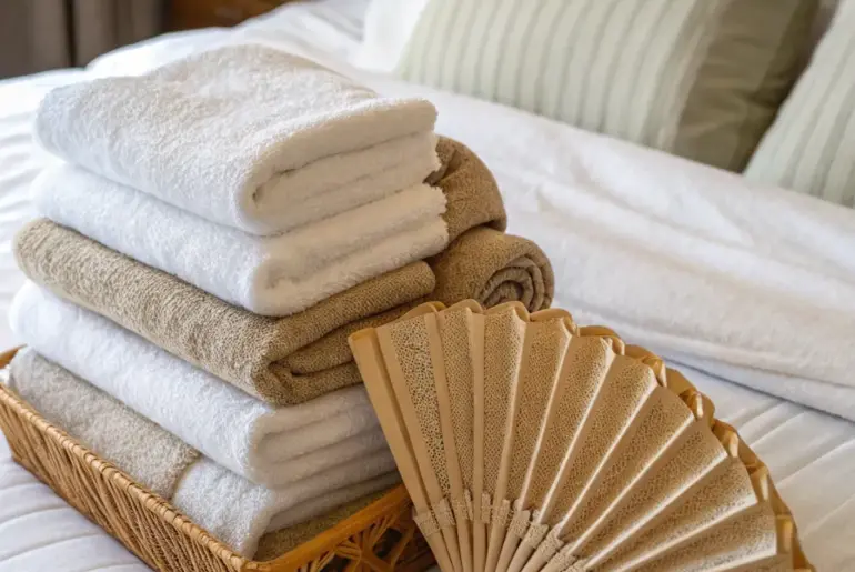 The simple act of folding towels can become a creative expression, enhancing the ambiance of your bathroom. Let’s dive into some innovative towel arrangement ideas that can bring both sophistication and order to your sanctuary. The Basket Tower A basket tower creates an organized and inviting display. Stack multiple basket weave bins to produce a basket tower of arranged towels. It’s both useful and aesthetically enjoyable. Might be a good match: Group of Stackable Basket…
