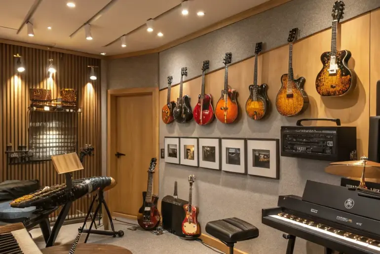 For music enthusiasts, the idea of setting up a personal guitar room can truly feel like a dream come true. Through careful and imaginative design, you have the power to transform any area into a creative and tranquil sanctuary. Themed Area Rugs A themed rug that creates harmony in the room. Include a themed rug to bring the room together. It’s a simple but effective way to boost the room’s style. Possibly handy products: ‘Woven…