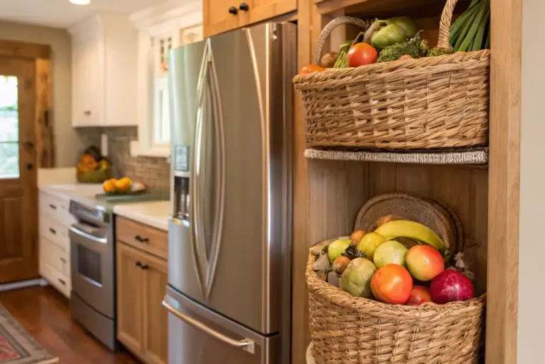 Greetings, decor lovers! Today, we’re venturing into a spot that often gets missed but is full of possibilities: the space above your refrigerator. Showcase Culinary Tools and Recipe Books Merge style and practicality by showcasing recipe books and tools. Flaunt your culinary passion by showcasing your favorite recipe books and tools. It not only appears great but keeps essentials easily accessible. Show off your personality! You might like: Recipe Book Display: Enhance kitchen appeal and…