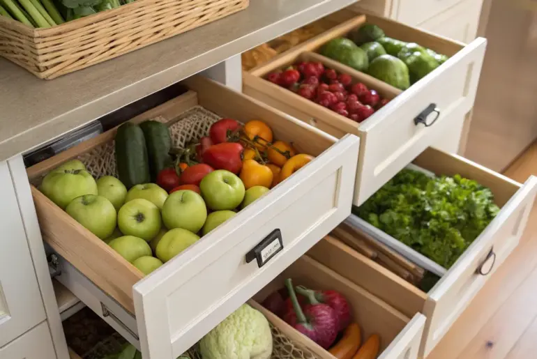 Organizing the larder isn’t just about making things neat; it’s about turning your cooking area into a peaceful retreat. Let’s uncover some innovative concepts to boost your pantry’s appeal. Opt for Pull-Out Drawers for Comfort Pull-out drawers inside a pantry provide convenient access to articles at the back. Pull-out drawers make accessing articles at the back of racks effortless. I adore how they keep my pantry organized and make finding ingredients a breeze. Effortless access…