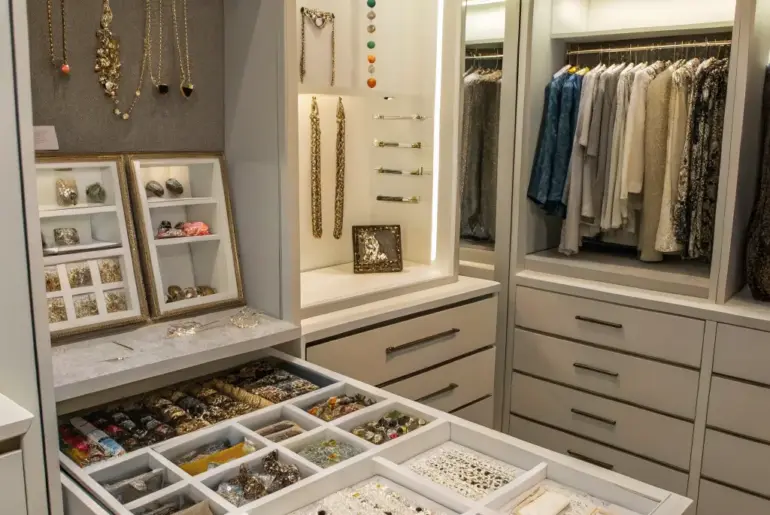 Fashioning a deluxe closet transcends mere organization—it’s about designing a private escape that blends practicality with panache. Allow’s examine some elegant concepts to convert your closet into a lavish retreat. Focal Point Centerpiece with Concealed Stowage A central centerpiece with integrated stowage introducing a practical dimension. A central centerpiece not only furnishes supplementary stowage capacity but also extends a platform for curating ensembles or adornments. In my blueprinting endeavors, I am particularly fond of utilizing…