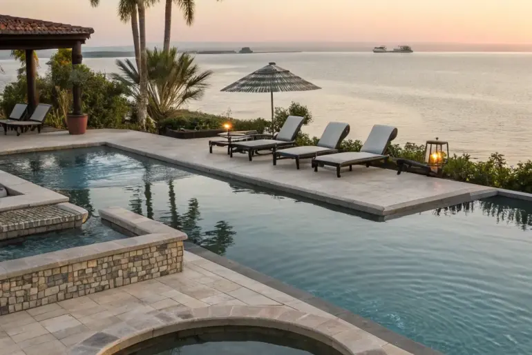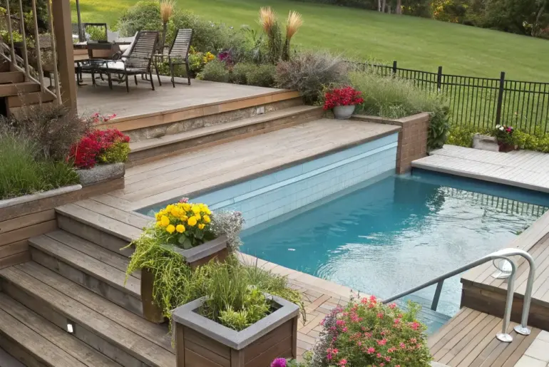 Envision a tropical escape just steps from your door. A contemporary beach-style pool entry transforms this dream into your everyday reality. Sustainable Pool Components Sustainable components add beauty and environmental responsibility. Go for sustainable materials, such as recycled glass tiles, to line your pool. In my projects, these components not only appear incredible but also promote environmentally friendly practices. You might give these a try: Reclaimed Glass Pool Tiles: Boost your pool’s aesthetics with eco-friendly…