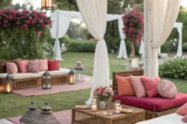 Capture eclectic boho vibes with a colorful pottery jug filled with wild blooms. This style adds a carefree and artistic touch to any space.