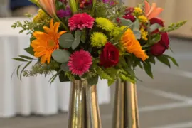Create a statement through striking colors alongside bright blooms. It’s my main approach for exuberant parties needing decor matching their energy.