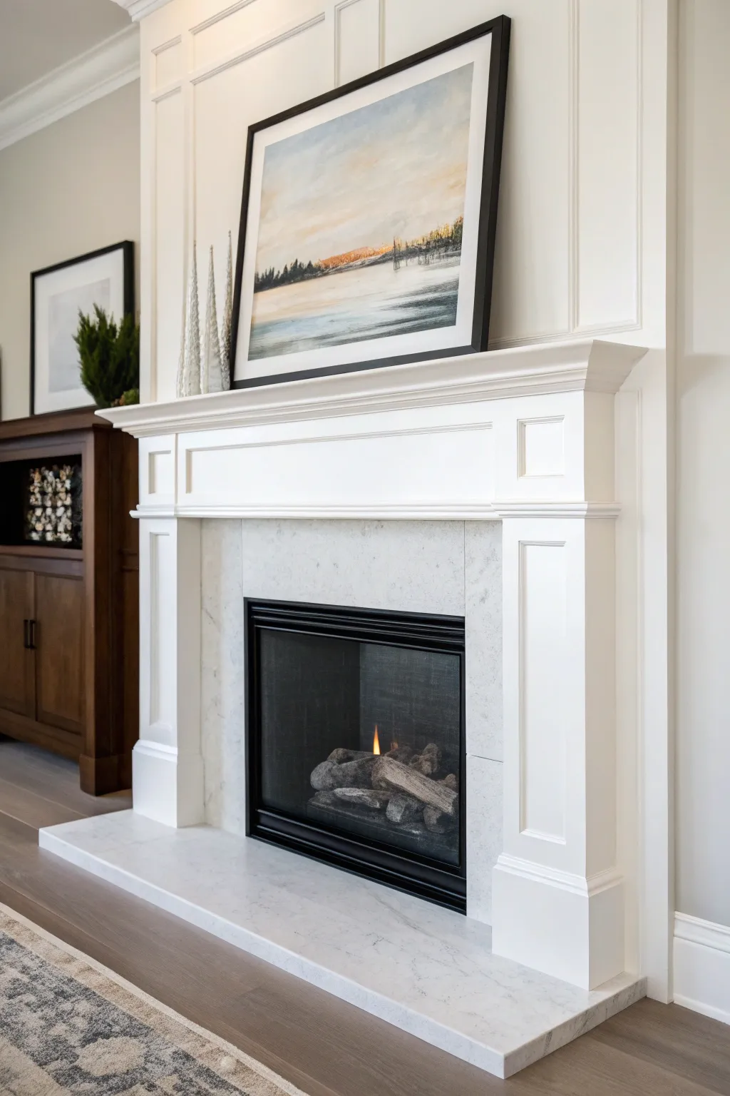 - Abstract Expression Canvas Art: Highlight the mantel with a modern art piece, establishing a serene and minimalist atmosphere.