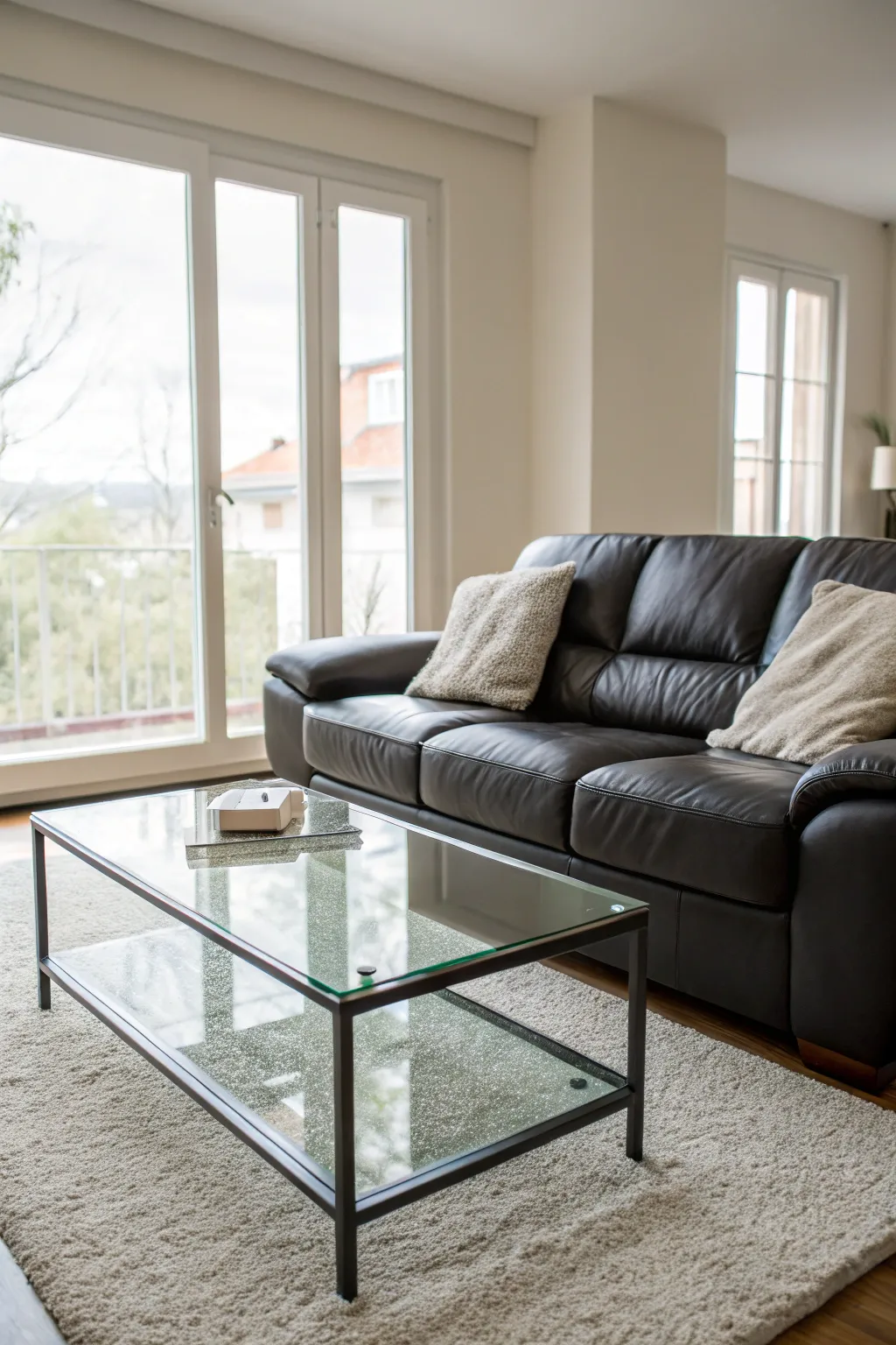 Choose a minimalist focal table to allow your leather sofa to be the star. This approach is particularly effective in modern spaces, where simplicity is crucial.