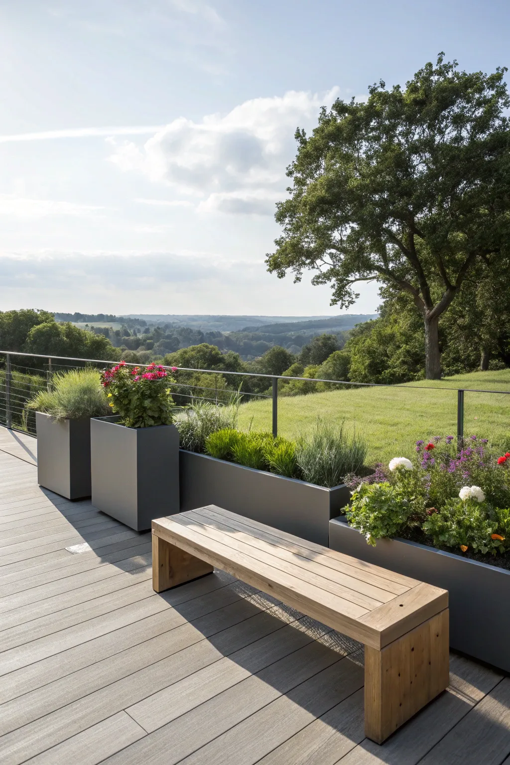 • Deck Rail Planters: Maximize your plant life using sleek deck rail planters, perfect for small spaces.