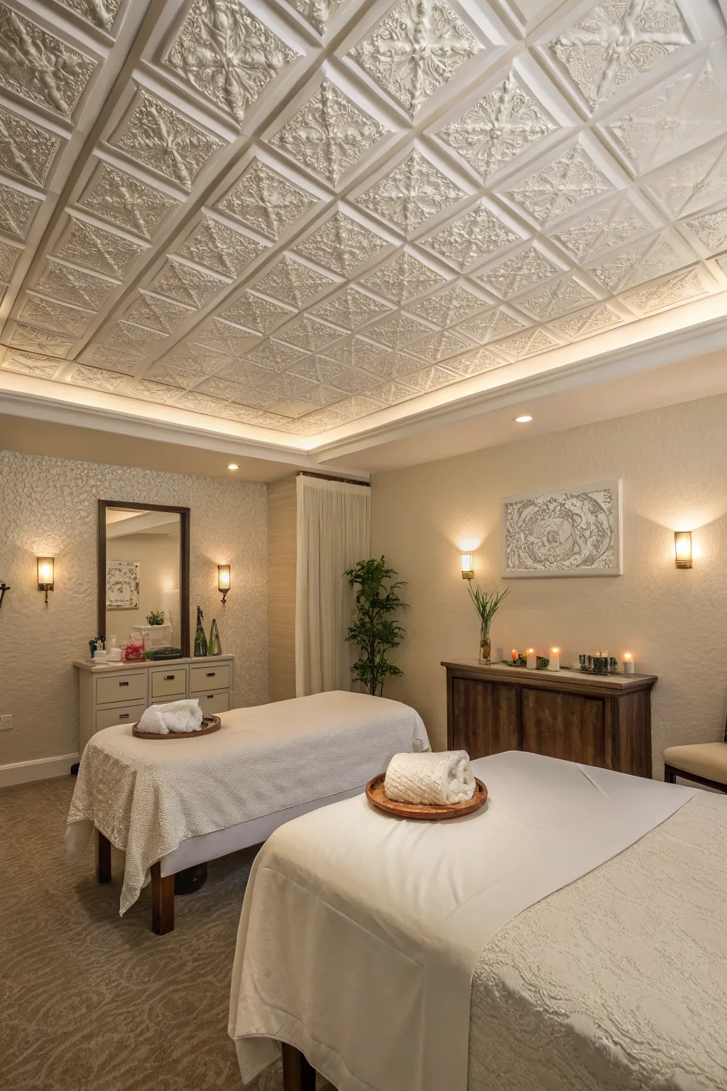 - Textured Overhead Boards: Enhance your ceiling with textured boards for a visually stimulating, serene setting.