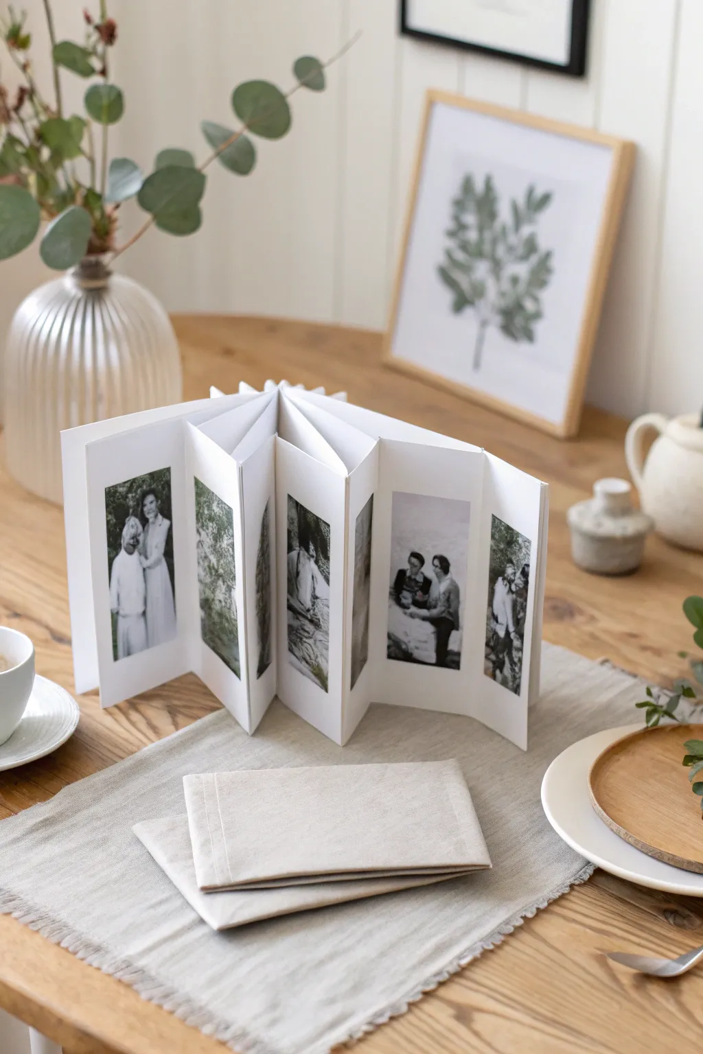 Design a concertina-style display of family pictures. It’s essentially a miniature photo album that fits into a card, rendering it a keepsake Dad will cherish. Memories in miniature.