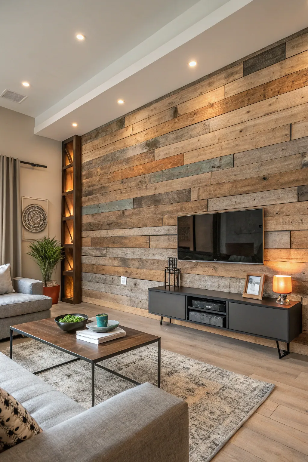 Layer wood panels in different orientations for a textured effect. This technique adds dimension and visual interest, making any room feel richer.