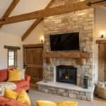 Consider a textured wall encircling your hearth, incorporating visual intrigue and depth. I am captivated by how this fashions a dynamic focal point without overpowering the space.