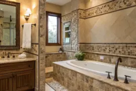 Beige vinyl flooring gives a subtle sense of luxury that goes well with different styles. It’s practical and strong, making it a smart pick for areas with lots of foot traffic.
