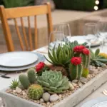 Surprise your guests with an arrangement displaying unexpected pairings like fleshy plants and roses. It’s a contemporary twist that’s sure to impress!