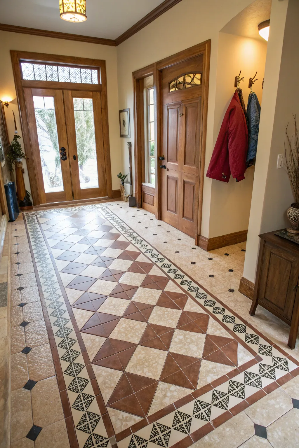 - Traditional Oriental Rug: Add warmth and history to your foyer with an authentic traditional oriental rug today.