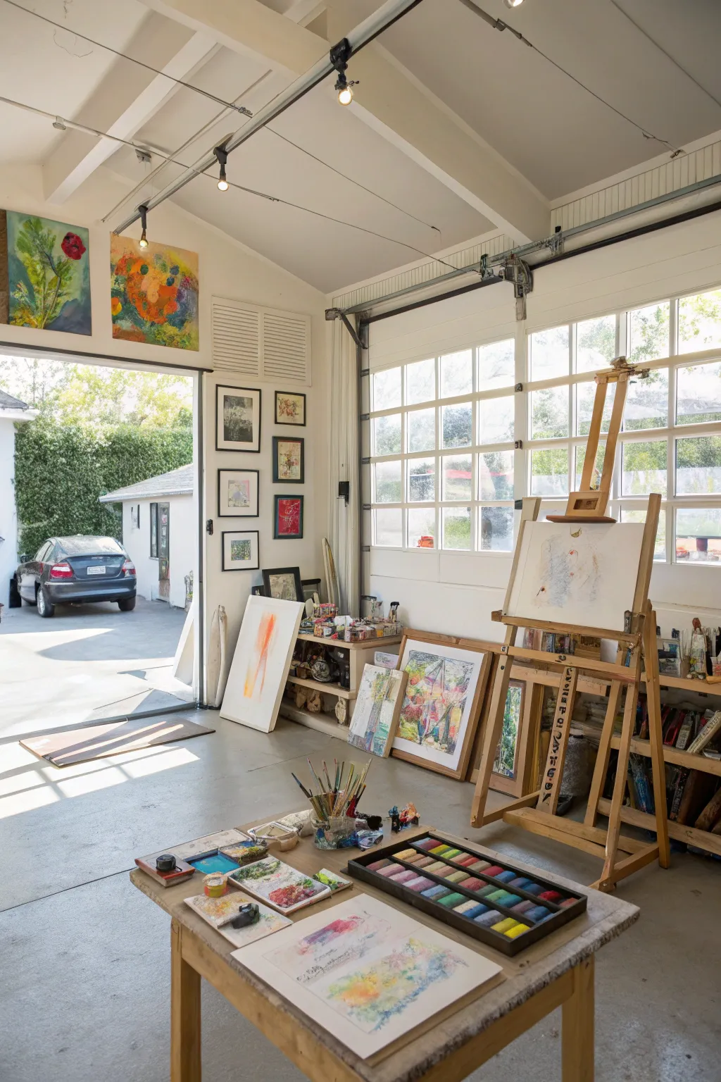 Convert your garage into an artistic studio, perfect for painting or crafting. This creative use of area allows for personal expression and inspiration.