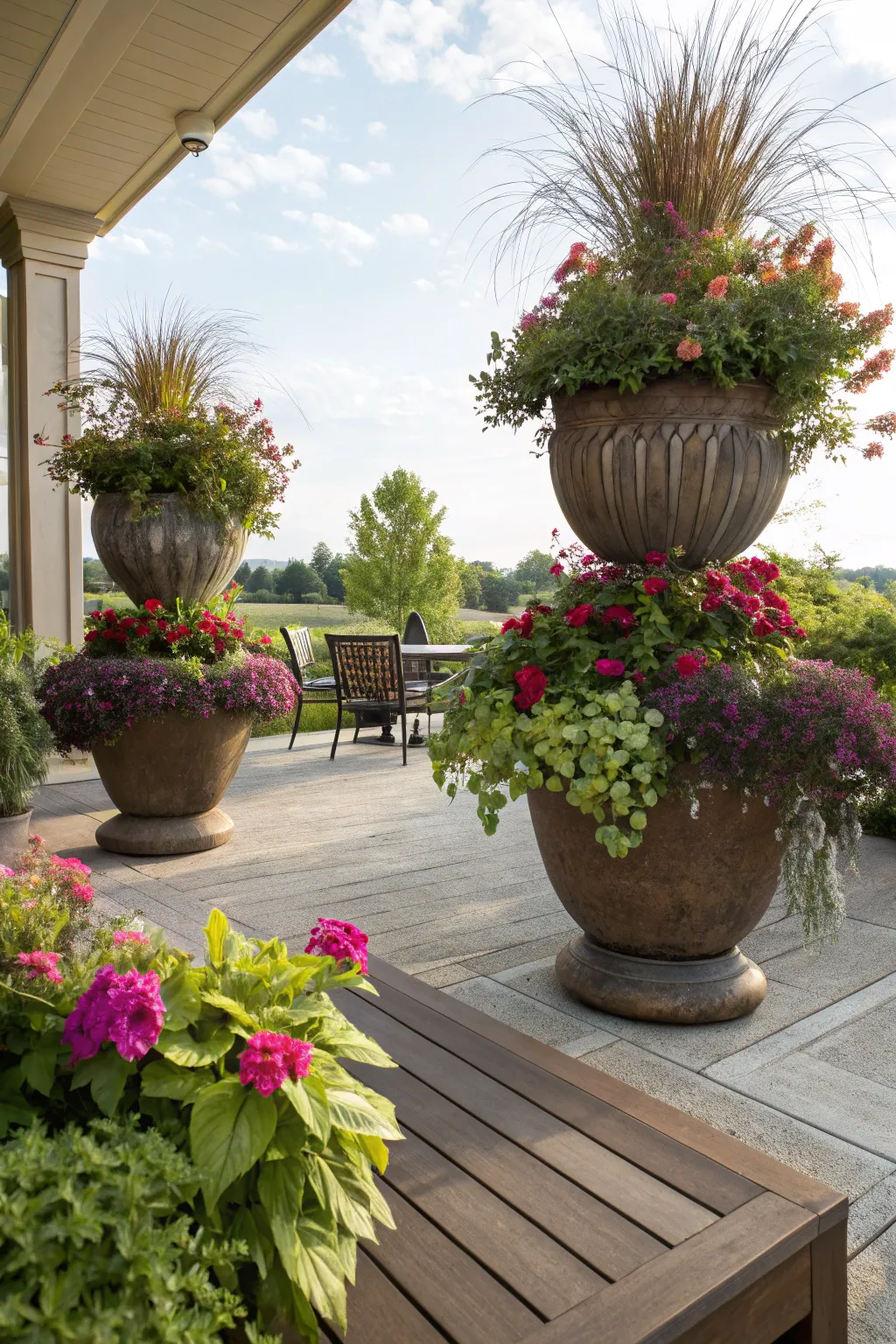 - Oversized Outdoor Pots: Enhance your deck’s appeal with oversized pots that need very little watering and upkeep effort.