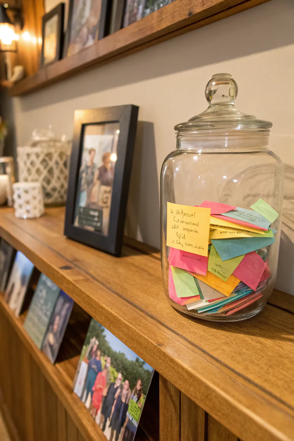 Fill a memory container with written notes remembering shared times and future dreams. This simple yet meaningful present has brought tears of joy to my mom’s eyes.