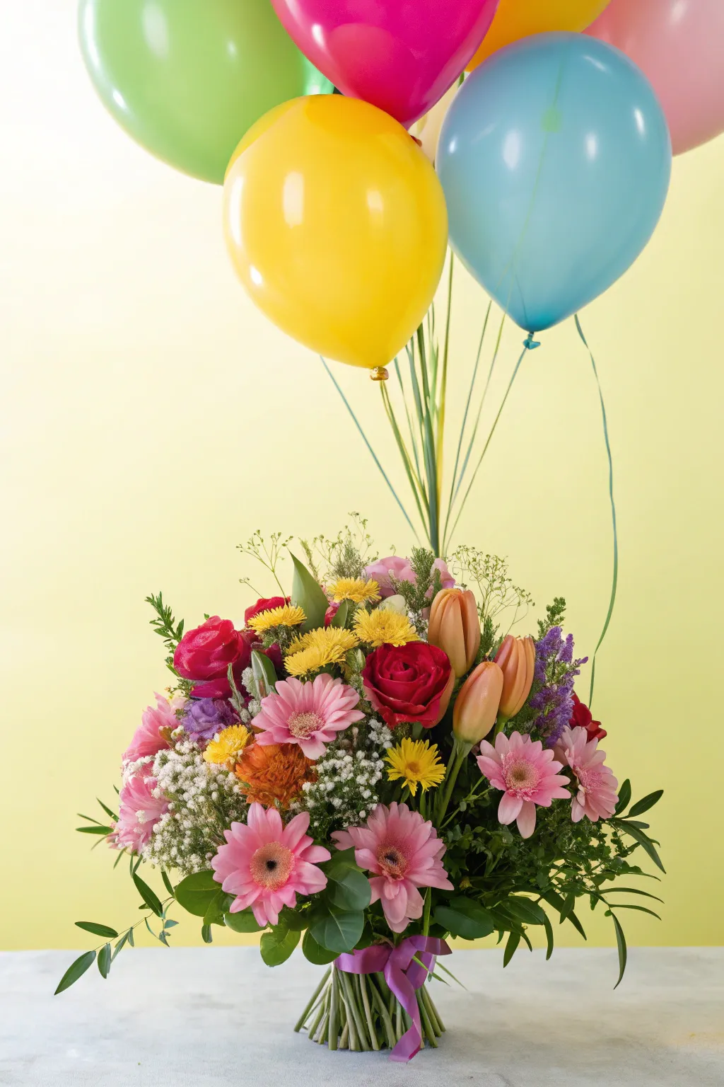 • Helium Air-Filled Designs Assorted Color Set: Enhance your arrangement’s charm with vibrant helium air-filled designs. Ideal for any celebratory occasion!