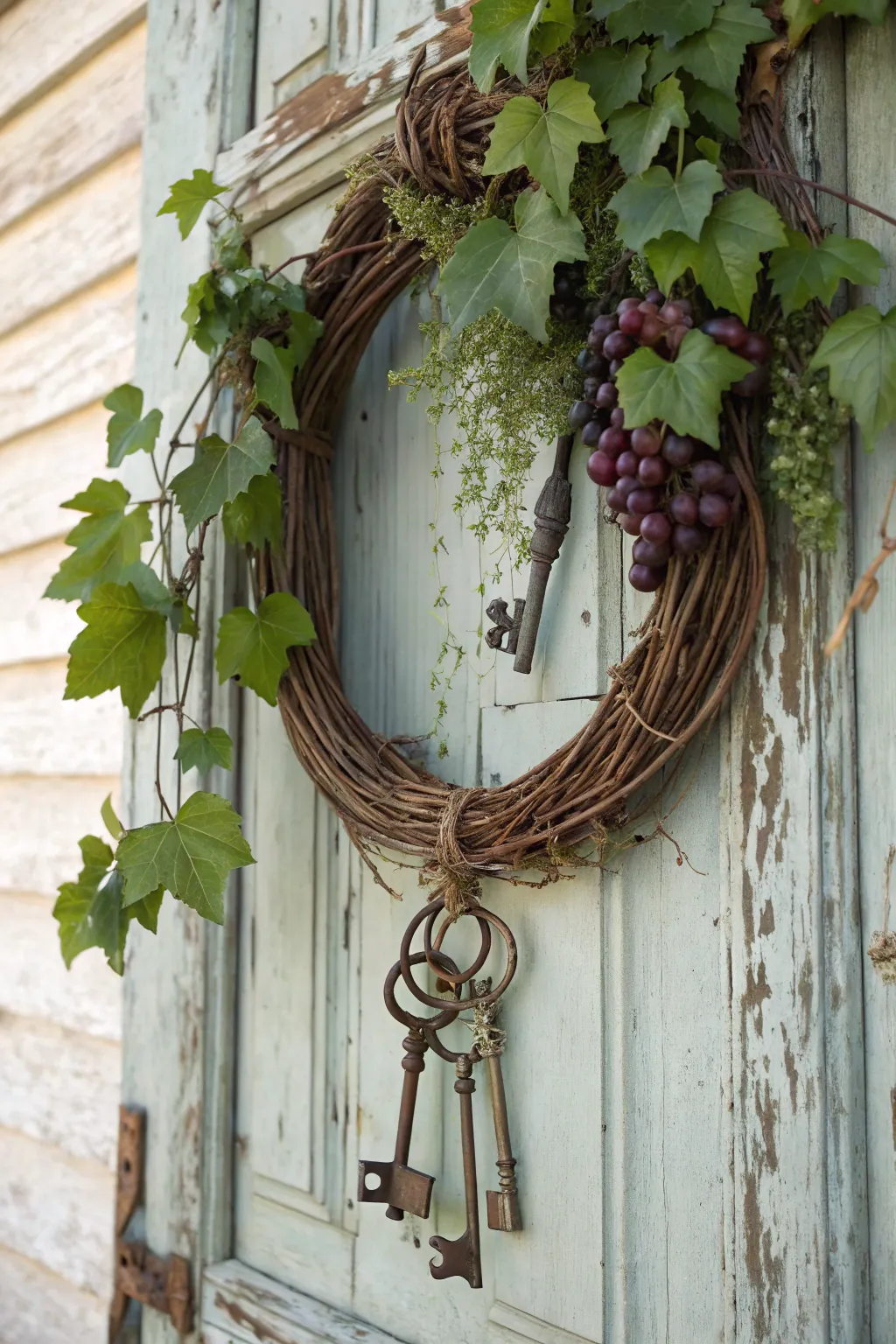 Incorporate a medley of historic keys into your wreath for a retro influence. I am keen on the mystery and heritage they introduce to the decoration.
