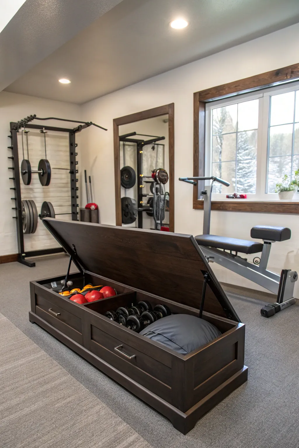 • Storage Bench with Concealed Space: Upgrade your gym with a bench that discreetly houses yoga mats and towels.