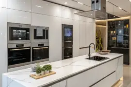 • Press-to-Release Cabinet System: Enhance your kitchen’s sleekness with press-to-release mechanisms for a clean, lever-free appearance.