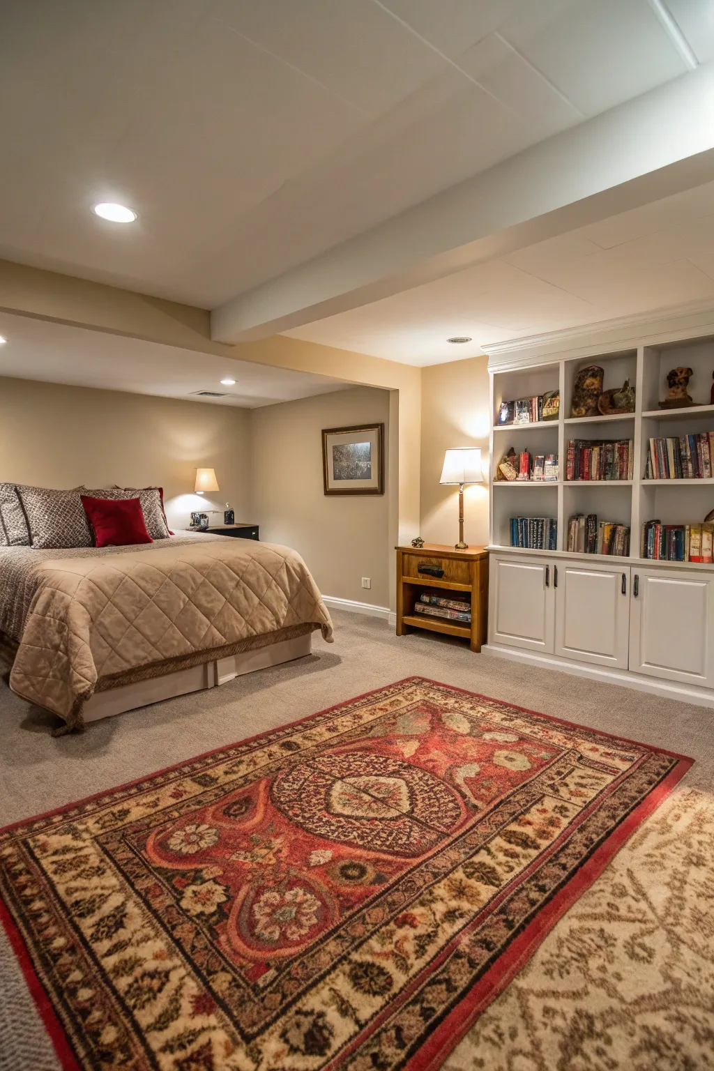 - Area Rug: Elevate snug sensations through a deluxe area rug. Infuse warmth and texture into your cellar bedroom.