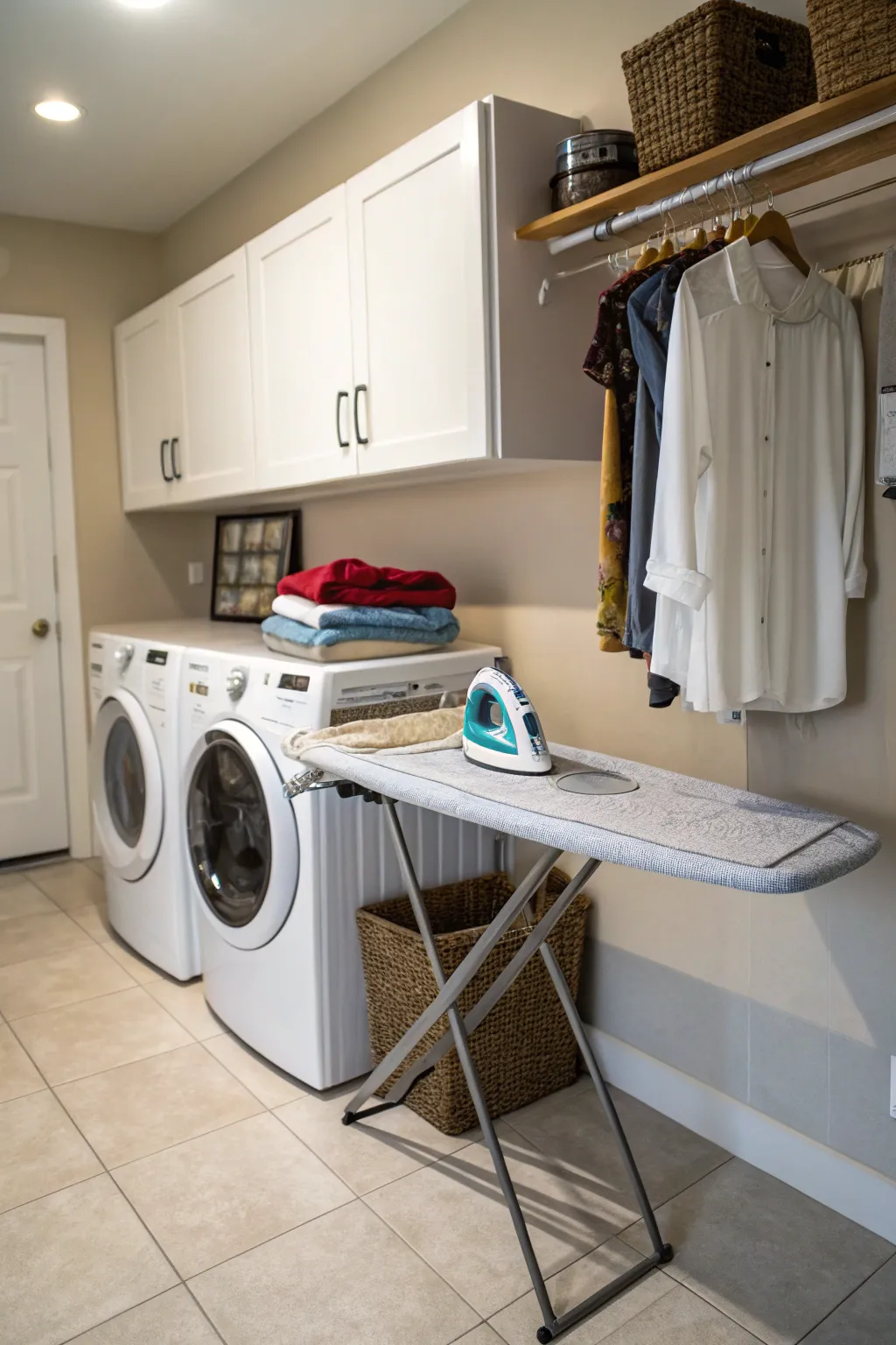 - Drop-Leaf Ironing Board: Make the most of your laundry area using a handy drop-leaf ironing board for effortless access.