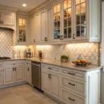 - Geometric Area Rug: Incorporate a chic detail using a geometric area rug, enhancing your beige shimmer kitchen easily.