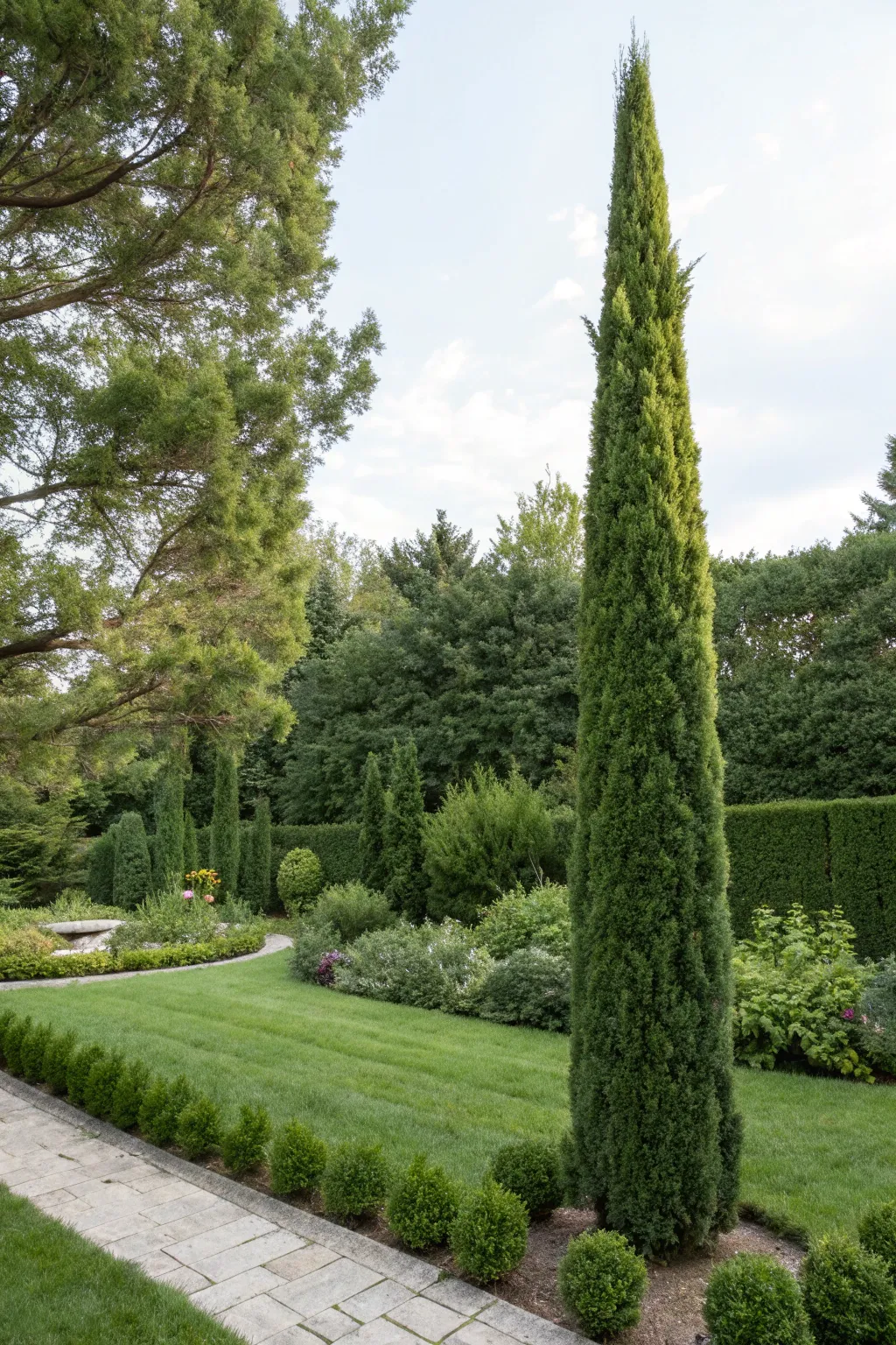 Utilize towering evergreens to introduce vertical features into your garden. I’m captivated by how they draw the eye upward, enhancing dimension and making smaller spaces feel more expansive.