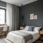 Integrate ash furnishings like bed frames, dressers, and bedside tables for a refined, contemporary visage. Round out these pieces with azure highlights to impart dimension and individuality to your bedroom.