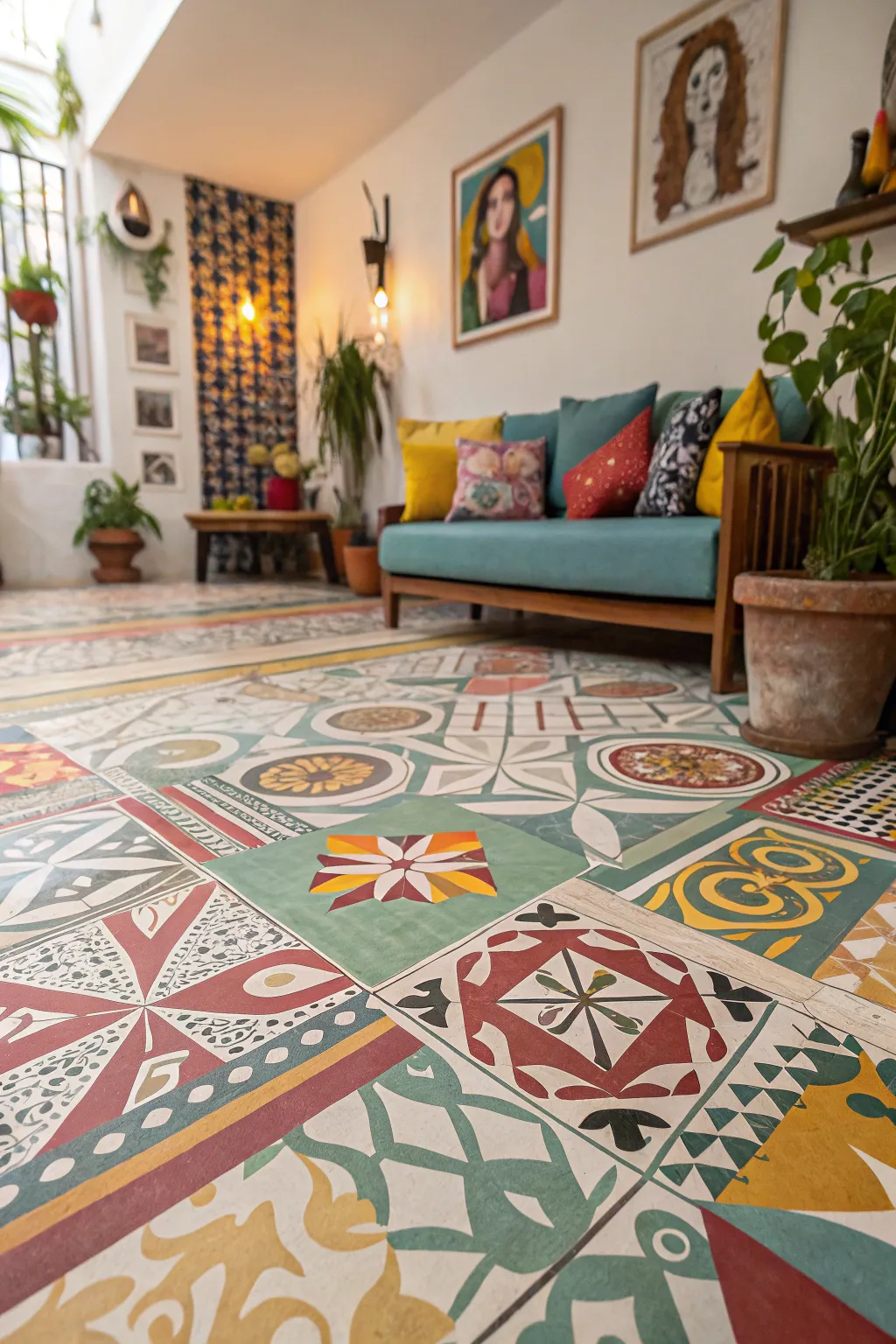 • Patterned Linoleum Sheet for Living Rooms: Revamp your living area using patterned linoleum sheets, breathing life and originality into your floors.