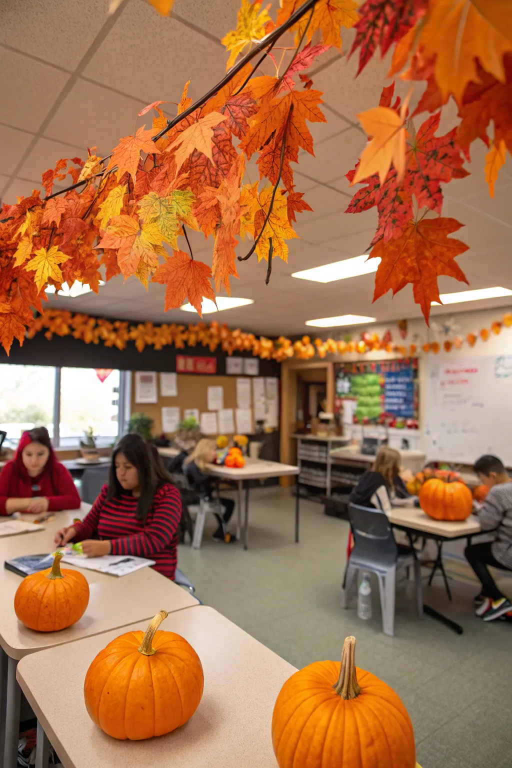 • Simulated Autumnal Garland: Revamp your classroom with lively garlands, seamlessly bringing the beauty of fall indoors.