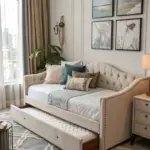 Select cloths such as cushions, wraps, and window dressings in matching tones. I often mix textures and materials to add depth and a cozy feel.