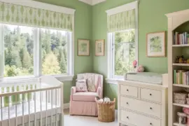 - Neutral-Tone Nursery Drapes: Create a calm mood by installing neutral-tone drapes that gently diffuse sunlight.