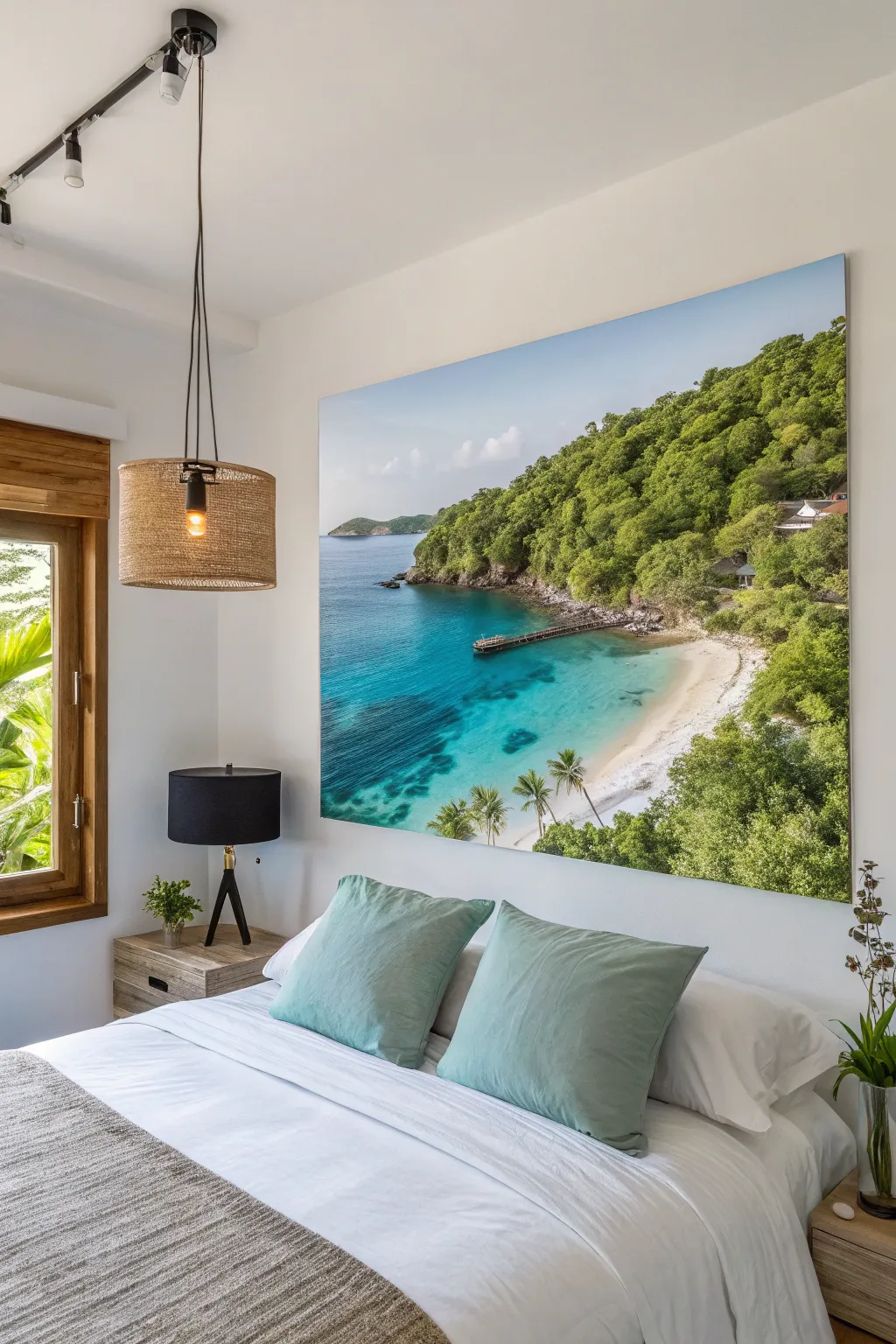 Finally, establish a tranquil retreat through wall decor depicting a tranquil isle hideaway. It’s the ideal escape directly inside your house.