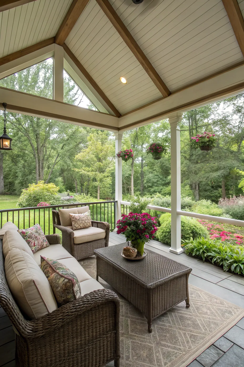 - Colorful Exterior Rug: Revamp your veranda floor with a colorful rug that flawlessly connects your design elements.