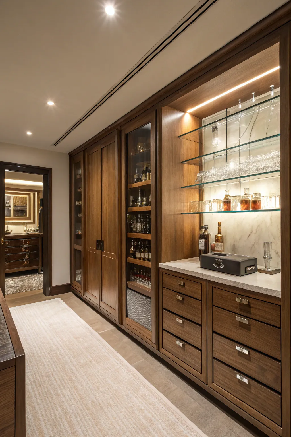 An allocated service zone within your spirits chamber is vital for mixing and dispensing beverages. I have observed that a sleek service surface contributes both utility and a hint of sophistication.