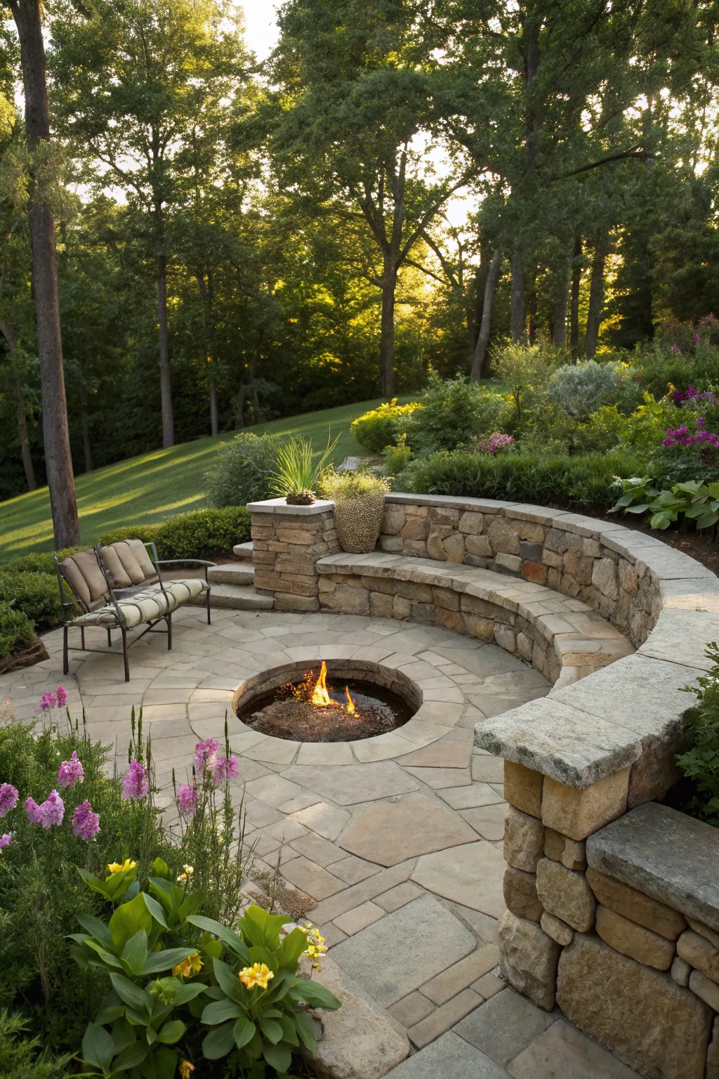 Upgrade your fire pit using natural rock seating to achieve an organic and unified style. Position sizable, flat rocks surrounding the pit for a snug and rustic seating arrangement.