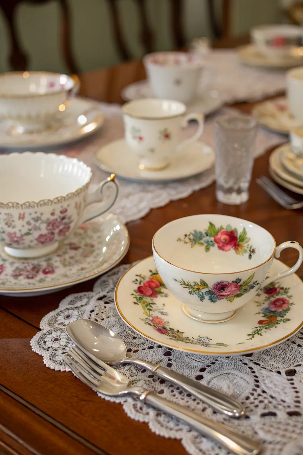 - Mixed Tea Cup and Saucer Set: Append excitement onto your board by way of distinct tea cups and saucers for a playful vision.