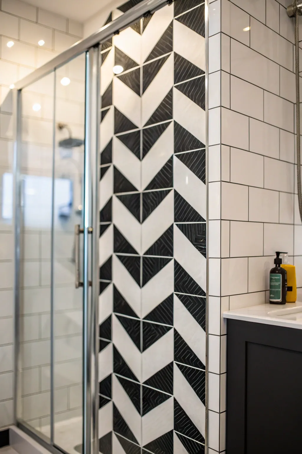 - Dark and Light Arrow Tile Set: Enhance your shower design with striking dark and light arrow tiles for a modern look.